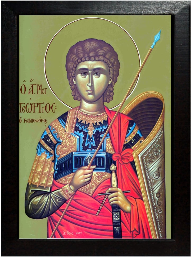 În acea vreme, în cetatea Romanilor era minunatul ostaş al lui Hristos, Sfîntul Gheorghe, cu neamul din Capadocia, fiu de părinţi creştini vestiţi, din tinereţe învăţînd buna credinţă. Acela din copilăria sa a rămas orfan de tată, sfîrşindu-se tatăl său prin muceniceasca nevoinţă pentru Hristos, iar maica lui s-a mutat cu el în Palestina, căci de acolo era cu neamul şi avea acolo multe averi şi moşteniri. Iar după ce Gheorghe a ajuns la vîrstă desăvîrşită, fiind şi frumos la faţă, s-a arătat şi foarte viteaz cu trupul; pentru aceea s-a rînduit în oaste şi s-a pus tribun peste ostaşii unei cete vestite. În acea boierie fiind, după ce şi-a arătat vitejia sa în războaie, s-a cinstit cu dregătoria de comit şi de voievod de către împăratul Diocleţian, mai înainte de a şti că este creştin, la douăzeci de ani ai vîrstei sale, după ce maica lui se sfîrşise întru Domnul.