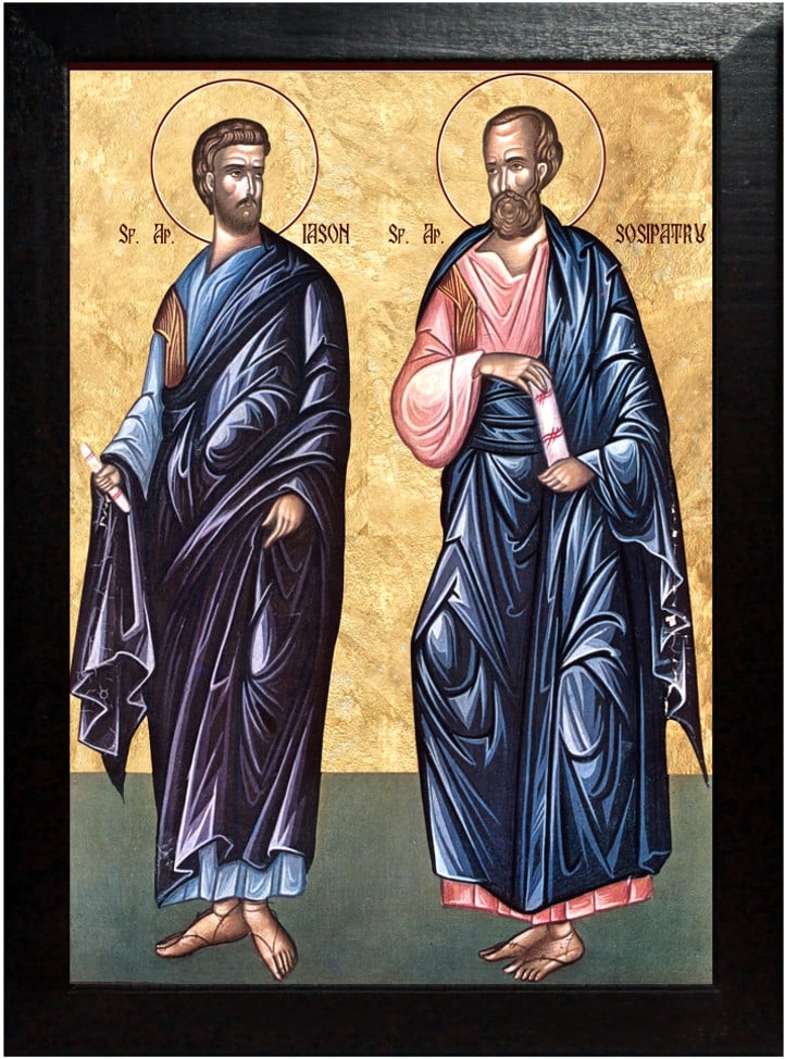 Sfîntul Apostol Iason era tarsinian. El a venit cel dintîi din Tars, către dreapta credinţă. Iar Sfîntul Sosipatru era apostol din Ahaia. Amîndoi aceştia, după primirea sfintei credinţe în Hristos, au fost ucenici ai Sfîntului Apostol Pavel, care, în epistola către Romani, îi numeşte rudenii ale sale.
