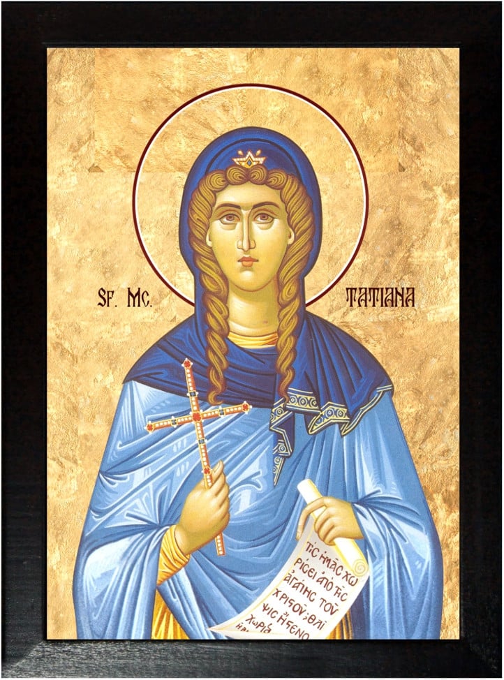 Sfânta Muceniță Tatiana s-a născut în Roma antică, într-o familie de rang înalt. Tatăl său, de trei ori antipat, era un creștin credincios și temător de Dumnezeu, păstrându-și credința în taină. El și-a crescut fiica, Sfânta Tatiana, cu evlavie și frică de Dumnezeu, învățând-o tainele Sfintelor Scripturi.
