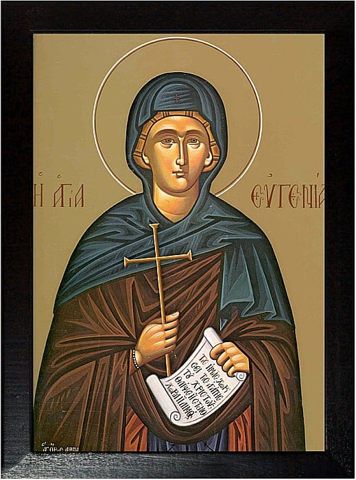 Sfanta Evghenia Fecioara, cea frumoasă cu cugetul cel înţelept şi împodobită cu curăţenia fecioriei.