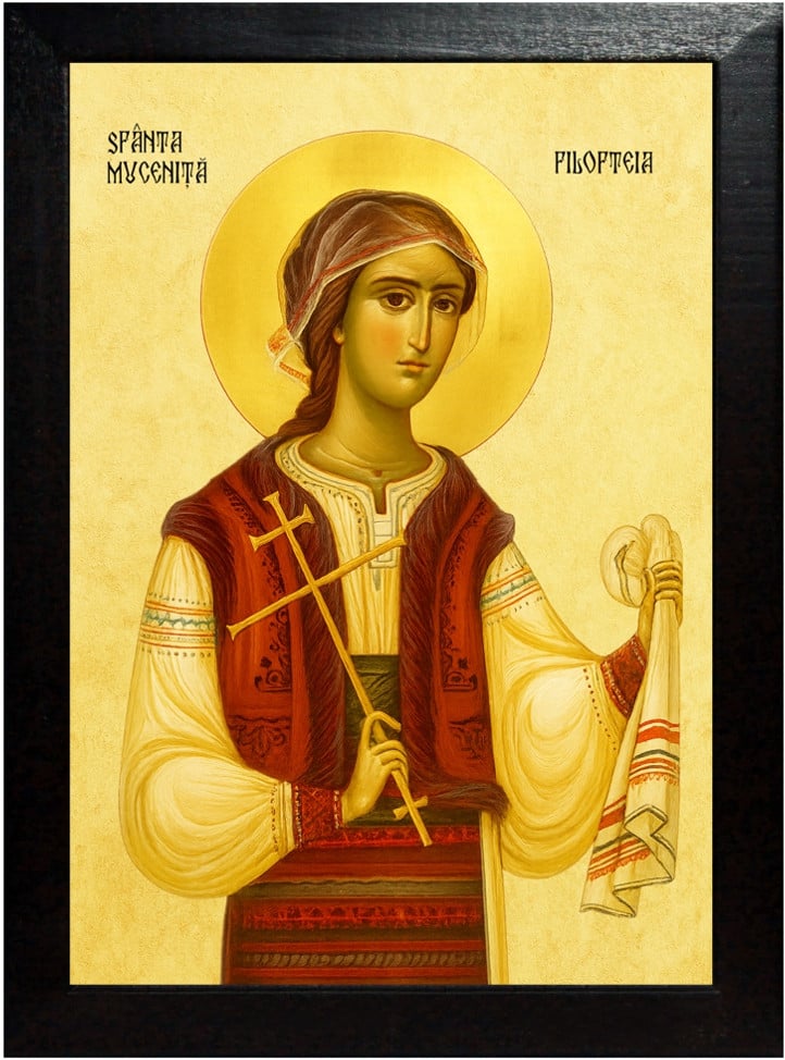 De atunci, Sfânta Filoteia se arată grabnică ajutătoare tuturor celor ce aleargă cu credință la ea: dă tămăduiri de boli, alungă duhurile necurate, aduce mângâiere și izbăvire în necazuri. Viața ei este chip de feciorie curată, de milostenie fără rezerve, de răbdare a ocărilor și bătăilor, până la jertfa vieții pentru dragostea lui Hristos. Sufletul ei se veselește acum în împărăția lui Dumnezeu, iar trupul ei nestricat izvorăște har și tămăduiri, ca o mulțumire vie adusă lui Hristos și ca un sprijin necontenit pentru poporul care o cinstește și o cheamă în rugăciune.