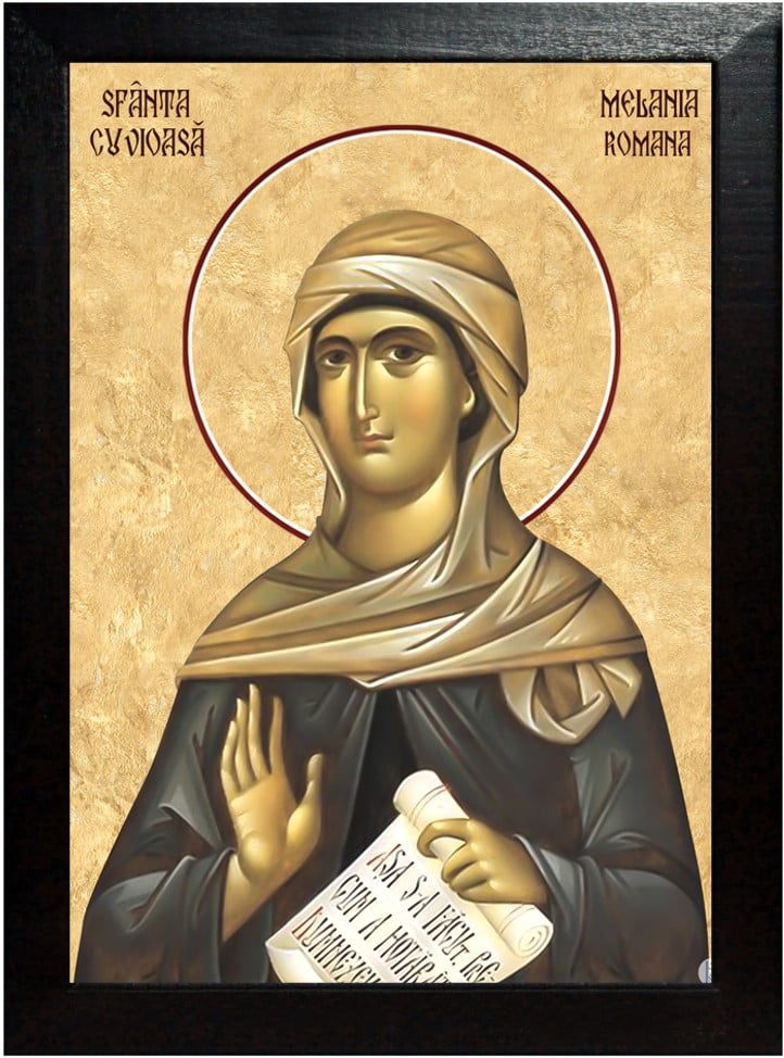 În sfînta cetate a Ierusalimului, sîrguindu-se treizeci şi şapte de ani, ca Avraam, cu iubirea de străini, o! cît de mulţi creştini a odihnit, dintre cei care veneau de la răsărit şi de la apus, de la miazănoapte şi de la miazăzi! Bisericilor şi mănăstirilor le-a făcut mult bine, pe monahi şi monahii le-a îndestulat cu toate cele de trebuinţă, închisorile şi temniţele erau pline de facerile ei de bine. În Roma, patria sa, la multe femei şi bărbaţi, a fost pricinuitoare de mîntuire, povăţuindu-i cu sfatul cel folositor, spre calea ce duce la viaţa veşnică. A unei femei ca aceea, plăcută lui Dumnezeu, era nepoată această Cuvioasă Melania, născută în Roma cea veche, din fiul ei, fiind de neam bun şi prealuminat, căci şi moşul şi tatăl ei erau din cei mai de frunte şi bogaţi romani.