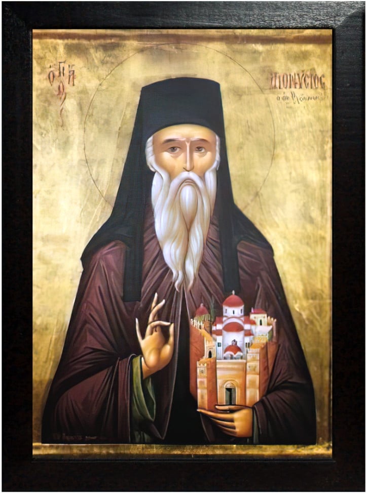 Parintele nostru, Sfântul Dionisie s-a născut în anul 1547, în Insula Zakynthos, de pe Marea Ionică. Provenea dintr-o familie nobilă şi a fost educat de călugări, reuşind să înveţe limbile greacă, italiană şi latină. A excelat în teologie şi a primit hirotonia ca preot, cu numele Daniel, în anul 1570. Mai târziu, a devenit ieromonah în Mitropolia din Zakynthos şi Strofades. În 1577 a fost ales episcop în Insula Eghina. După un an de vieţuire pe insulă, s-a întors în Zakynthos, unde a fost numit episcop şi preşedinte. În 1622 s-a retras şi în 17 decembrie a adormit întru Domnul şi a fost înmormântat. Trupul lui a fost descoperit intact şi emanând bun miros de flori şi de tămâie. De aceea, el este cinstit şi a fost proclamat sfânt de către Patriarhia de Constantinopol. Este sărbătorit în 17 decembrie, iar în 24 august Biserica serbează mutarea sfintelor sale moaşte.