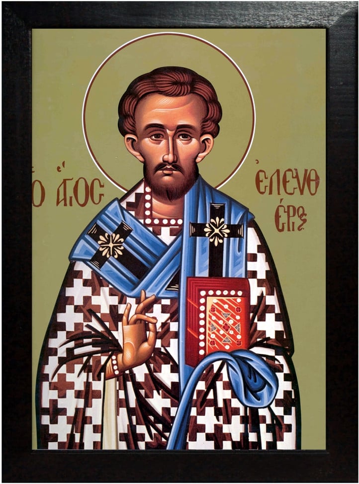 Pe cand împărăţea în Roma Elie Adrian, slujind idolilor, în acea vreme minunatul Elefterie s-a cunoscut ca o stea strălucită, a cărei patrie era marea cetate a Romei. Părinţii lui, de bun neam, străluciţi şi bogaţi, iar maica lui s-a învrednicit de mai mare cinste şi slavă pentru credinţa în Hristos, învăţată fiind de Sfîntul Apostol Pavel, care a botezat-o şi numele ei era Antia.