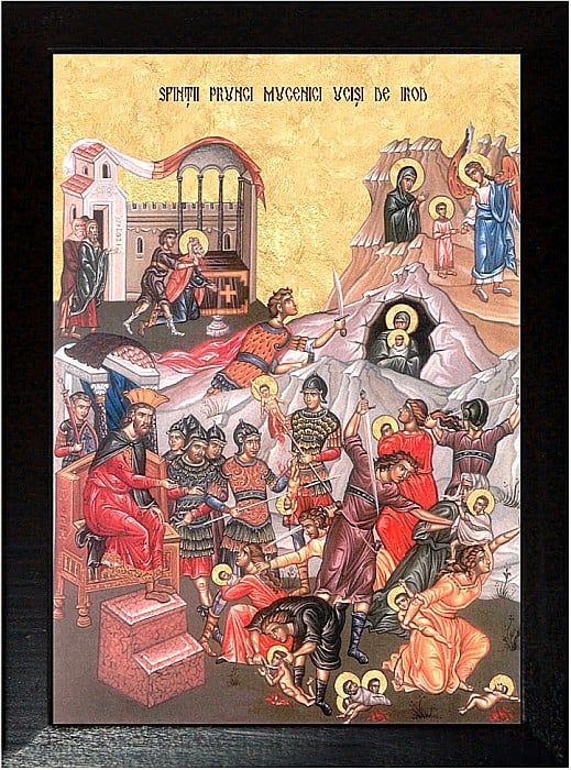 Irod afland de nasterea Domnului, socotea ca Hristos voieşte să împărăţească cu împărăţie pămantească, neştiind că împărăţia Lui nu este din lumea aceasta, si si-a vărsat mania sa asupra nevinovaţilor prunci, cu varsta de la doi ani in jos.