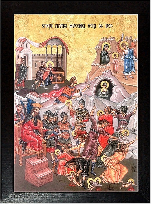 Irod afland de nasterea Domnului, socotea ca Hristos voieşte să împărăţească cu împărăţie pămantească, neştiind că împărăţia Lui nu este din lumea aceasta, si si-a vărsat mania sa asupra nevinovaţilor prunci, cu varsta de la doi ani in jos.