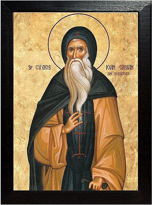 Acest Cuvios Părinte de neam străromân s-a născut prin anii 365 de la venirea mântuirii prin Hristos-Domnul, în Dobrogea, numită pe atunci Sciţia Mică, la un loc ce-i păstrează din vechime până azi numele "podişul Casian" şi "peştera lui Casian". Localitatea Casimcea din judeţul Tulcea îi poartă, de asemenea, numele. Provenind dintr-o familie distinsă, a urmat la şcolile timpului. Dar însufleţit de o arzătoare sete de desăvârşire duhovnicească renunţă de tânăr la atracţiile deşarte şi înşelătoare ale vieţii lumeşti şi pleacă la Locurile Sfinte însoţit de prietenul său Gherman, frate nu prin naştere, ci în duh. Aşa au ajuns amândoi călugări într-o mănăstire din Betleem. Întemeindu-se după cuviinţă în rânduielile vieţii chinoviale, adică de obşte, după modelul de viaţă al călugărilor din Palestina, Mesopotamia şi Capadocia şi simţind în ei dorul de o mai mare desăvârşire, au hotărât să plece în sihăstriile Egiptului, la anahoreţii despre a căror îmbunătăţită viaţă duhovnicească auziseră. Aşa au ajuns la comunităţile din delta Nilului, adâncindu-se de acolo tot mai mult în pustie. Dar pretutindeni pe unde treceau, căutau cu râvnă pe sfinţii însinguraţi, ca să cinstească în ei strălucirea harului şi bogăţia roadelor lor şi pentru a le cere sfaturi duhovniceşti pentru mântuirea sufletului. Aceste întrebări şi răspunsuri ne vor fi lăsate ca o moştenire sfântă în cartea Convorbirilor, cu care Cuviosul Casian a înzestrat Biserica.