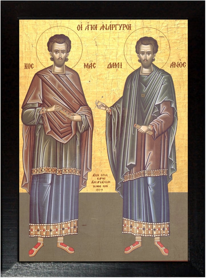 SFINŢII MUCENICI COSMA ŞI DAMIAN deprinzându-se la meşteşugul doctoriei, toate bolile le tămăduiau cu lucrarea. Căci aveau împreună ajutător lor întru toate pe darul Unuia Dumnezeu, şi peste câţi din oamenii cei ce pătimeau şi din dobitoace îşi puneau mâinile lor, îndată aceia se făceau sănătoşi desăvârşit.