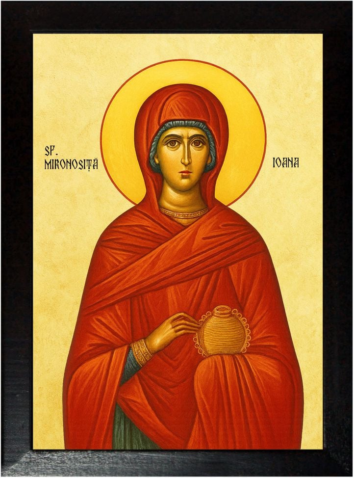 Sfânta Mironosiţă Ioana, soţia lui Huza, iconom (intendent) al regelui Irod Antipa este amintită în Evanghelia de la Luca VIII, 3 ca fiind una dintre femeile care Îl urmaseră pe Hristos din Galileea şi care îi ajutau pe ucenicii Domnului, împreună cu Suzana, Maria Magdalena şi altele.