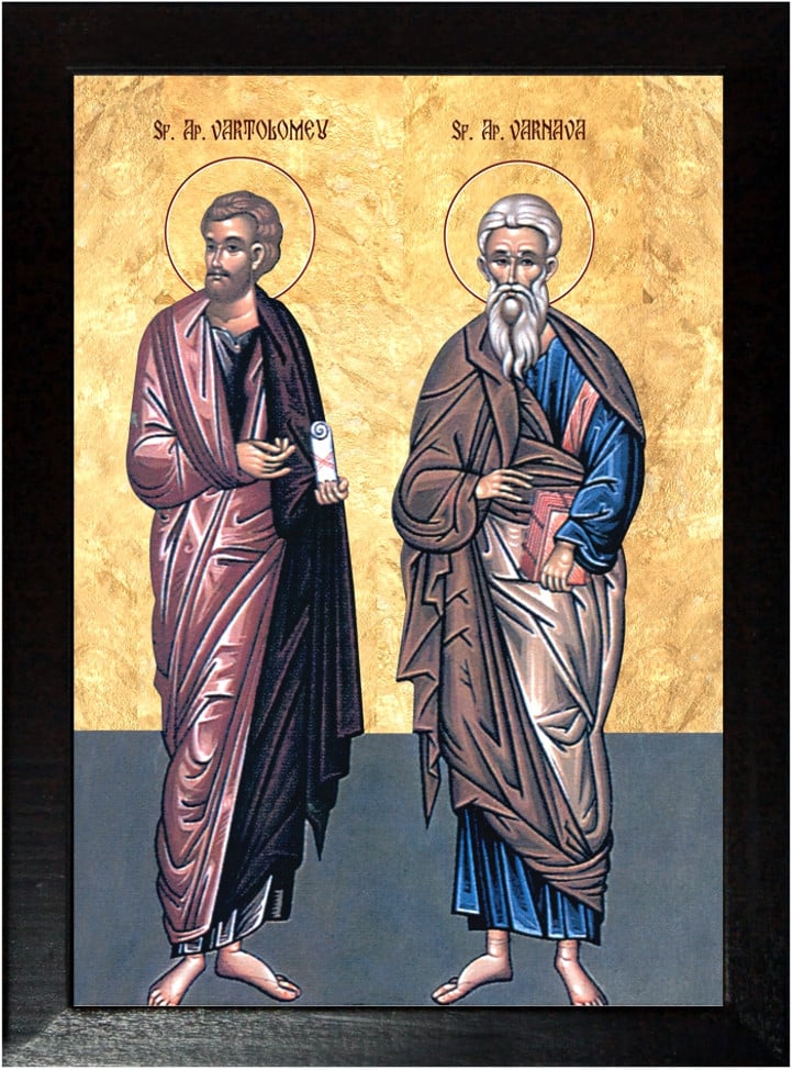 Sfântul Apostol Vartolomeu a fost unul din cei doisprezece apostoli. Dupa primirea limbilor în chip de foc ale Sfântului Duh, acestuia i-au cazut sortii ca, împreuna cu Sfântul Apostol Filip, sa mearga în Siria si în Asia de sus, pentru propovaduirea cuvântului lui Dumnezeu. Deci au plecat amândoi în partile acelea, uneori umblând împreuna, alteori despartindu-se prin cetati si apoi iarasi întâlnin-du-se; si întorceau cu învataturile lor pe multi oameni spre mântuire.