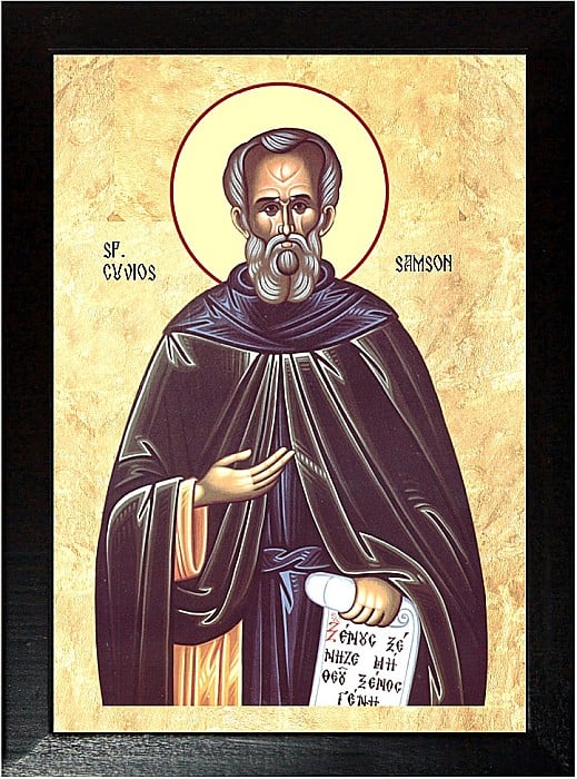 Dorind Samson ca pe sufletul său să-l îmbogăţească mai bine prin duhovniceasca bogăţie, a defăimat lumea şi toate cele din lume şi, urmînd lui Hristos, s-a făcut străin, căci, lăsîndu-şi rudele şi cunoscuţii, a ieşit din Roma cea veche şi s-a sălăşluit în pustie, ca şi Ilie cel de demult. Dar Dumnezeu, voind ca robul său să le fie multora de folos, l-a adus din pustie în Roma cea nouă, adică în Constantinopol. Acolo, găsindu-şi o casă oarecare, petrecea într-însa, odihnind la el pe cei străini şi săraci, slujindu-le în tot chipul, primind pe cei neputincioşi şi tămăduindu-i de boli, nu numai prin meşteşugul său doctoricesc; dar le slujea cu toată plăcerea la pregătirea hranei şi a aşternuturilor cu atîta osîrdie, încît se părea că acea milostivire este firească lui. Căci precum firea soarelui este ca să lumineze şi a focului ca să ardă, aşa lui Samson îi era din fire silinţa cu osîrdie spre cei săraci, bolnavi şi străini.