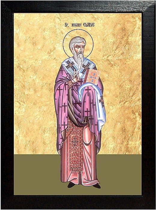 Curăţindu-te pe sineţi de întinăciunea răutăţii, te-ai uns şi te-ai făcut preot lui Dumnezeu şi chinuindu-te prin sânge, mai mult ai strălucit întru virtuţi părinte şi ai luminat cugetele credincioşilor cu razele minunilor tale celor minunate, mărite Eladie.
