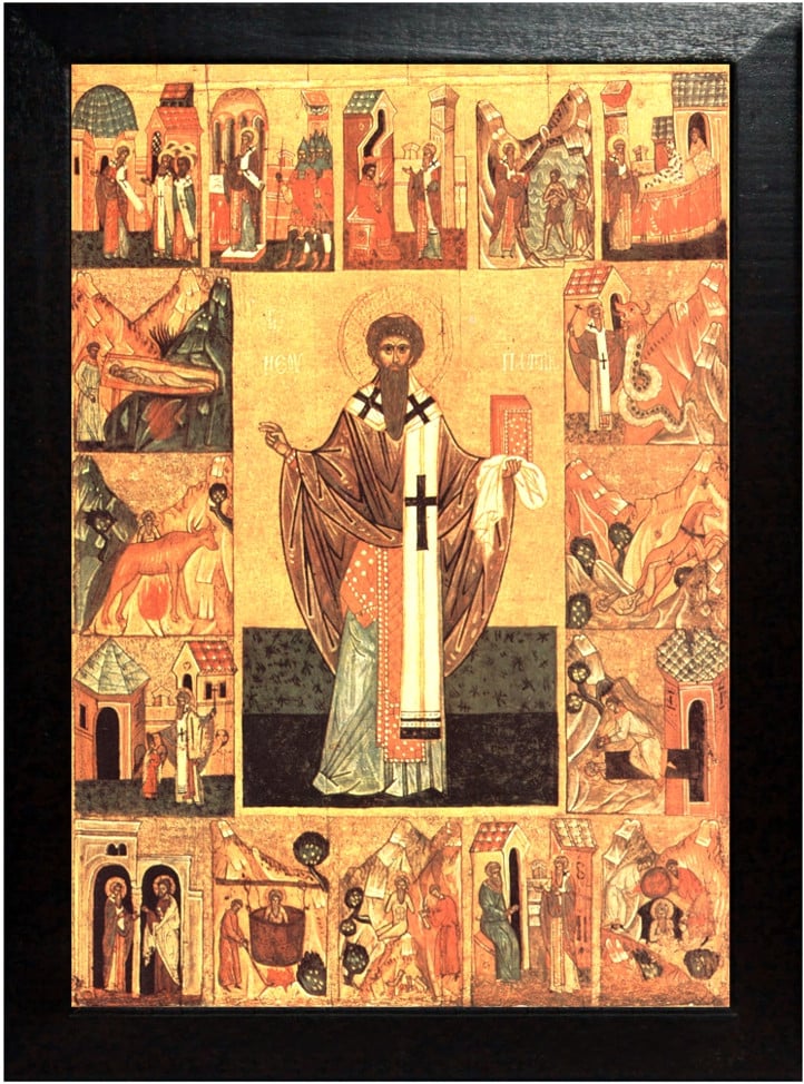 Sfîntul Sfinţit Mucenic Patrichie, Episcopul Prusiei, cu cei trei nepoţi: Acachie, Menandru şi Polien