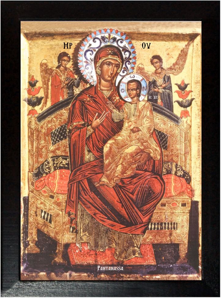 Și în România se găsesc câteva copii ale icoanei „Pantanassa”, puse spre închinare credincioșilor: la Biserica Rusă din București, la Mănăstirea Oașa din județul Alba, precum și la Mănăstirea Șinca Nouă din județul Brașov. În plus, în primăvara anului 2014, parohia ortodoxă română „Sfântul Ioan Botezătorul și Sfântul Mucenic Alban” din Luton, Marea Britanie, a primit ca binecuvântare o copie a acestei icoane direct de la Mănăstirea Vatoped.