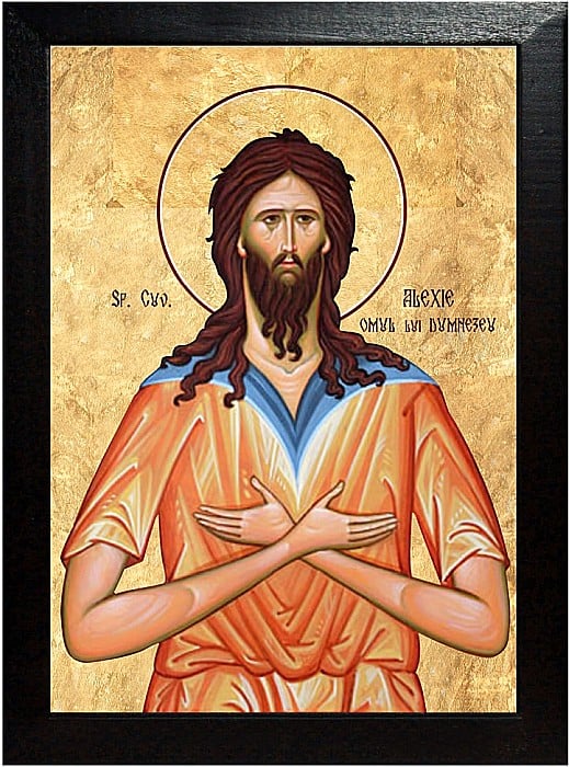 Sfîntul Alexie a stat în Edesa, lîngă biserica Preasfintei de Dumnezeu Născătoare, şaptesprezece ani şi s-a făcut iubit lui Dumnezeu. După aceasta, s-a făcut pentru dînsul descoperire eclesiarhului, căci acesta a văzut în vedenie icoana Preasfintei Născătoare de Dumnezeu, grăind către dînsul: "Adă în biserica mea pe omul lui Dumnezeu, fiindcă este vrednic de cereasca împărăţie; căci rugăciunea lui se suie ca nişte tămîie cu bun miros înaintea lui Dumnezeu şi precum stă coroana pe capul împărătesc, aşa Duhul Sfînt se odihneşte peste dînsul". Iar eclesiarhul, după vedenia aceea, căutînd pe un om ca acela şi neaflîndu-l, s-a întors spre icoana Născătoarei de Dumnezeu, rugînd-o să-i arate pe omul lui Dumnezeu. Şi a auzit iarăşi în vedenie cuvînt de la Preasfînta Născătoare de Dumnezeu, că săracul cel ce şade în pridvor la uşa bisericii, acela este omul bisericii, acela este "Omul lui Dumnezeu".