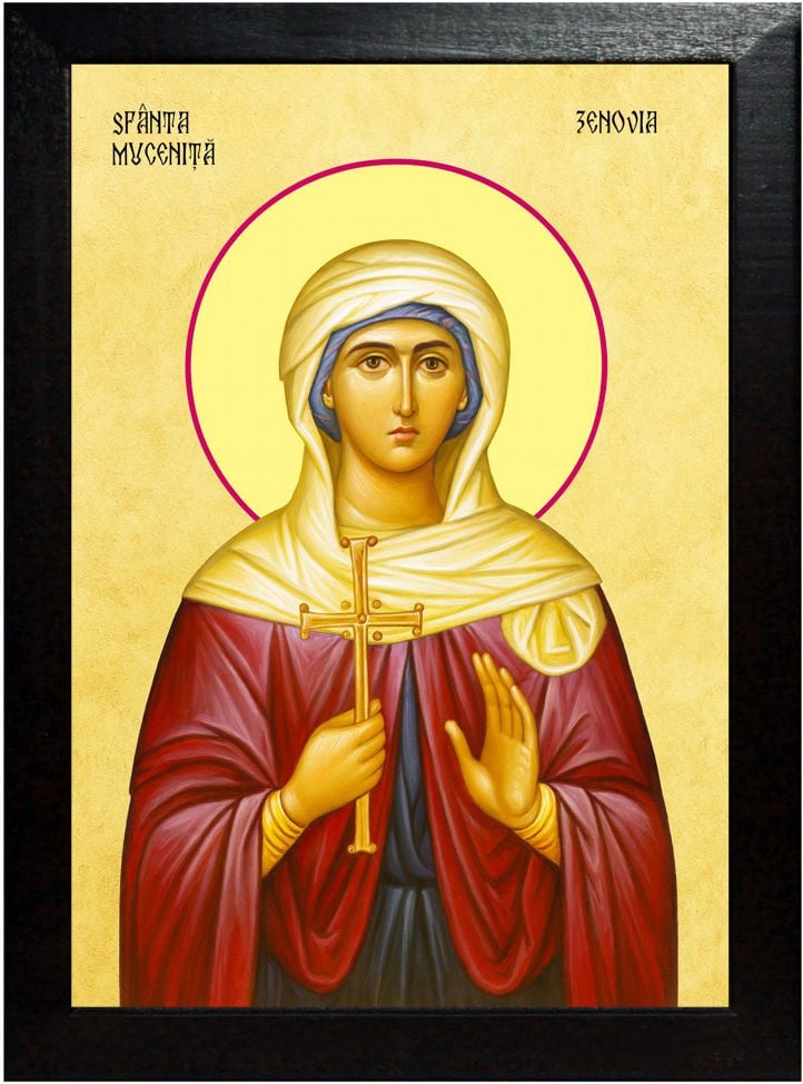 Când fericita Zenovia a auzit că fratele ei este chinuit pentru Hristos, a lăsat toate și a alergat la locul de osândă. Văzându-l spânzurat și plin de răni, inima i s-a aprins de dragoste dumnezeiască și a strigat către chinuitor: „Și eu sunt creștină și cred în același Dumnezeu ca fratele meu. Poruncește să fiu și eu chinuită împreună cu el, ca să beau și eu din paharul patimilor și să mă încununez cu aceeași cunună”.