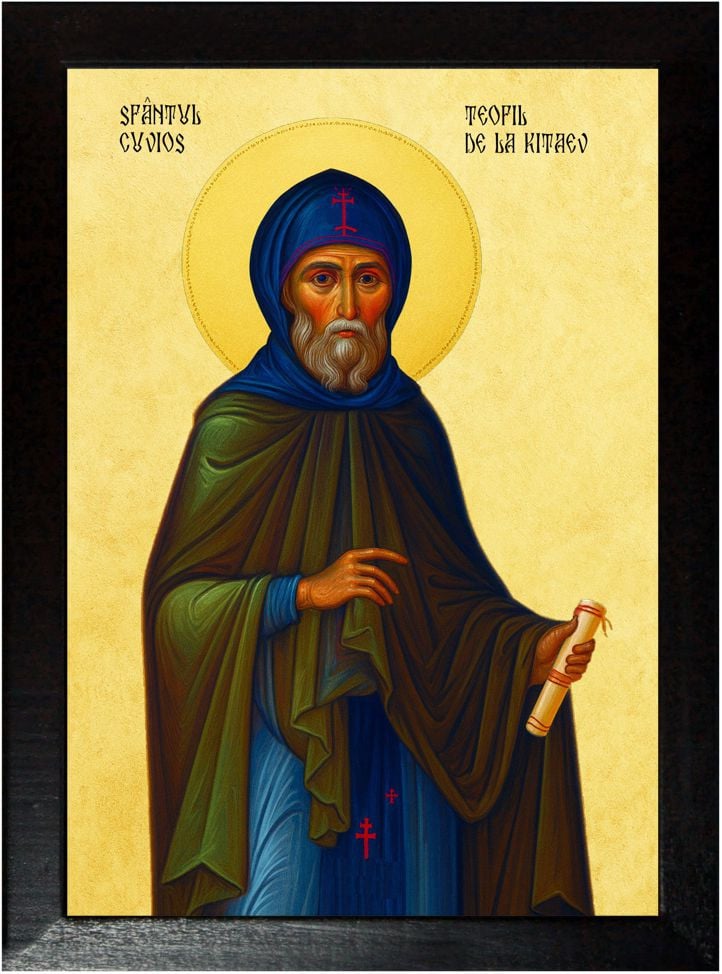 Astăzi, moaștele Sfântului Cuvios Teofil cel Nebun pentru Hristos se păstrează la Mănăstirea Kitaev, împreună cu relicvele altor sfinți mari – ale Sfinților 12 Apostoli, ale Sfinților Ioachim și Ana, ale Sfinților Zaharia și Elisabeta și ale Cuvioasei Dositeea. De acolo, din lumina odihnei veșnice, sfântul încă mângâie, vindecă și povățuiește sufletele celor ce-l cheamă cu credință.