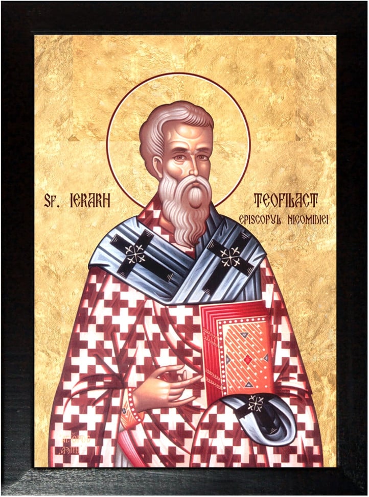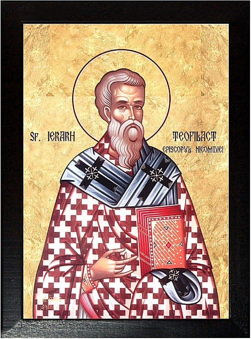 În zilele tulburării Bisericii de eresul luptătorilor de icoane acest binecredincios bărbat, Teofilact, a mers din părţile Răsăritului la Constantinopol şi s-a împrietenit cu marele luminător al Bisericii, adică cu Sfîntul Tarasie, încă fiind preot şi senator întru împărăteştile palaturi, fiind mai întîi dregător al lucrurilor de taină.