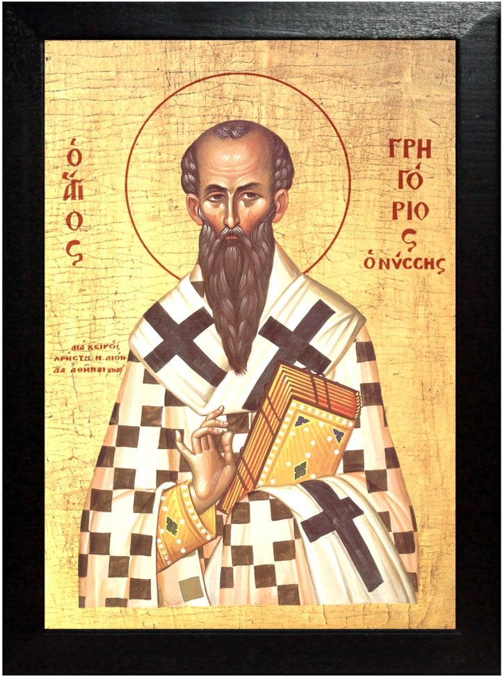 Sfântul Grigorie a adormit întru Domnul, lăsând în urma sa multe scrieri folositoare pentru Biserica Ortodoxă. Cu chipul trupesc, semăna cu fratele său, Vasile, însă era cărunt și puțin mai vesel la înfățișare.