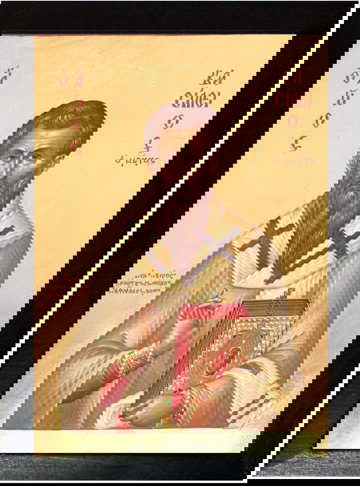 Sfantul Vasile a fost “un om foarte inalt la stat si drept ca o faclie, uscativ si slabit de ajunare si de veghere, oaches la fata, dar obrazul ingalbenit, nasul lunguiet, sprancenele cercuite si plecate, asemenea omului ganditor, fruntea incretita, umerii obrajilor iesiti, tamplele adancite, cam plesuv la par, cu barba destul de lunga, carunta pe jumatate”.