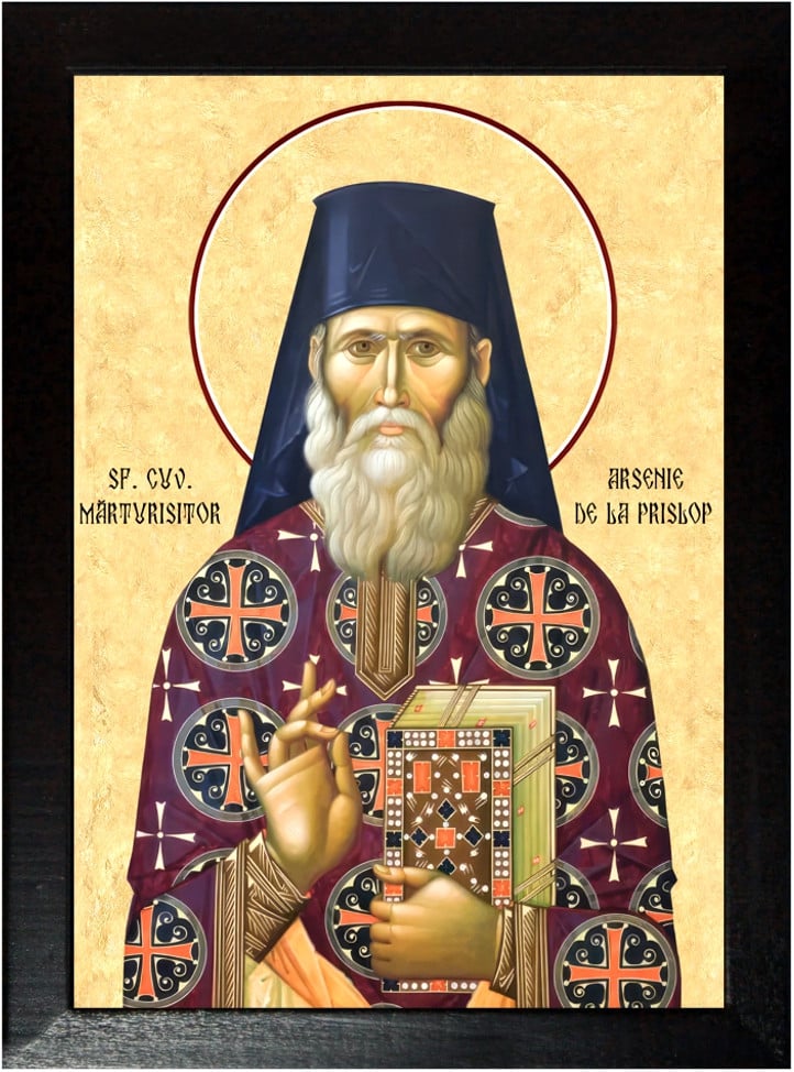 Sfantul Arsenie de la Prislop - Arsenie Boca (1910-1989) a fost un preot ortodox, călugăr, pictor și teolog român, cunoscut ca mare duhovnic al secolului XX în România, fiind renumit pentru predicile și activitatea sa spirituală la Mănăstirile Sâmbăta de Sus și Prislop. De-a lungul vieții sale, Arsenie Boca a devenit o figură centrală a spiritualității românești datorită învățăturilor sale, dar și datorită percepției populare asupra sa ca vindecător și vizionar.