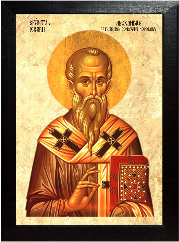 Sfîntul Alexandru a fost protopop şi horepiscop pe vremea Sfîntului Mitrofan, întîiul Patriarh al Constantinopolului, fiind înfrumuseţat cu toate faptele bune. Cînd s-a adunat în Niceea întîiul Sinod a toată lumea, al Sfinţilor Părinţi, Patriarhul Mitrofan, neputînd să se ducă la acel sobor, din pricina bătrîneţilor şi slăbiciunii trupeşti, a trimis pe acest Alexandru, apărător al dreptei credinţe. El, şezînd în sobor în locul patriarhului său, s-a luptat mult pentru dreapta credinţă împotriva răucredinciosului Arie. După săvîrşirea Sinodului, Alexandru întorcîndu-se din Niceea în Constantinopol, îngerul Domnului s-a arătat fericitului Mitrofan, spunîndu-i că i se apropie sfîrşitul şi poruncindu-i să-l lase după sine ca patriarh pe Alexandru, zicînd: "După zece zile îţi vei lua cununa de la Dumnezeu, iar scaunul bisericesc să-l ia, în locul tău, Alexandru, slujitorul tău".