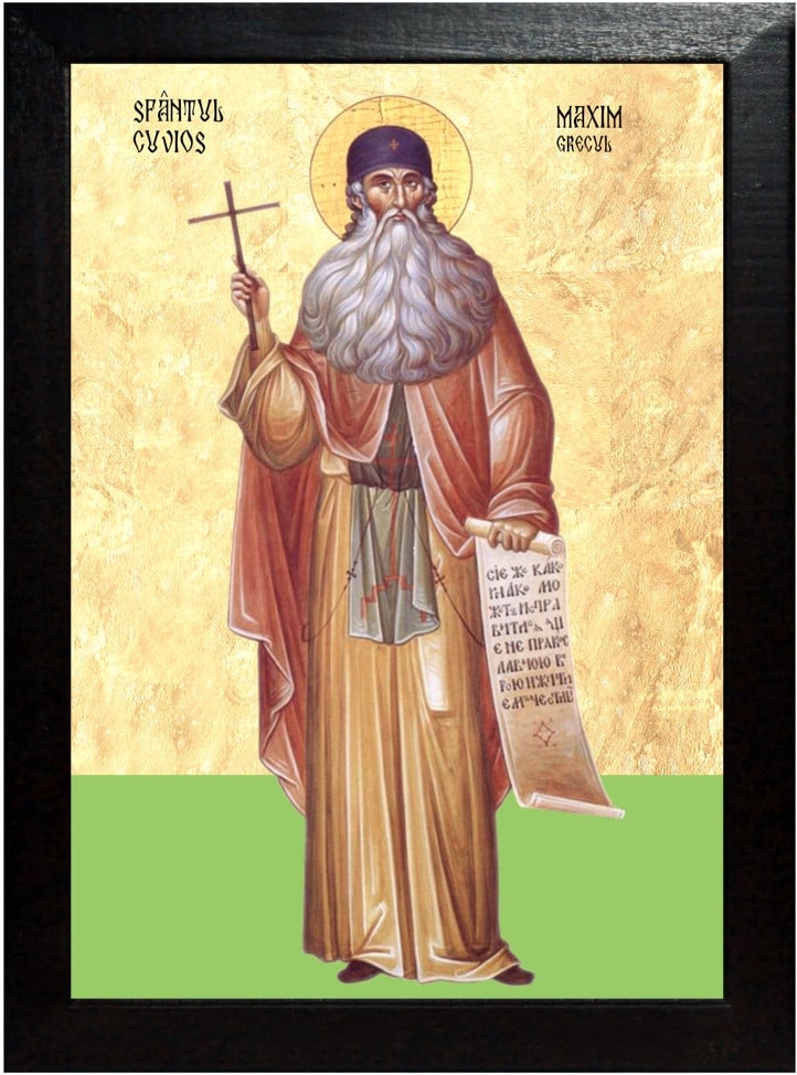 Sfântul Maxim Grecul, fiul unui demnitar bogat din Arta (Epir), a beneficiat de o educație aleasă. În tinerețe, a călătorit mult și a studiat limbile străine și diverse științe în orașe precum Paris, Florența și Veneția.