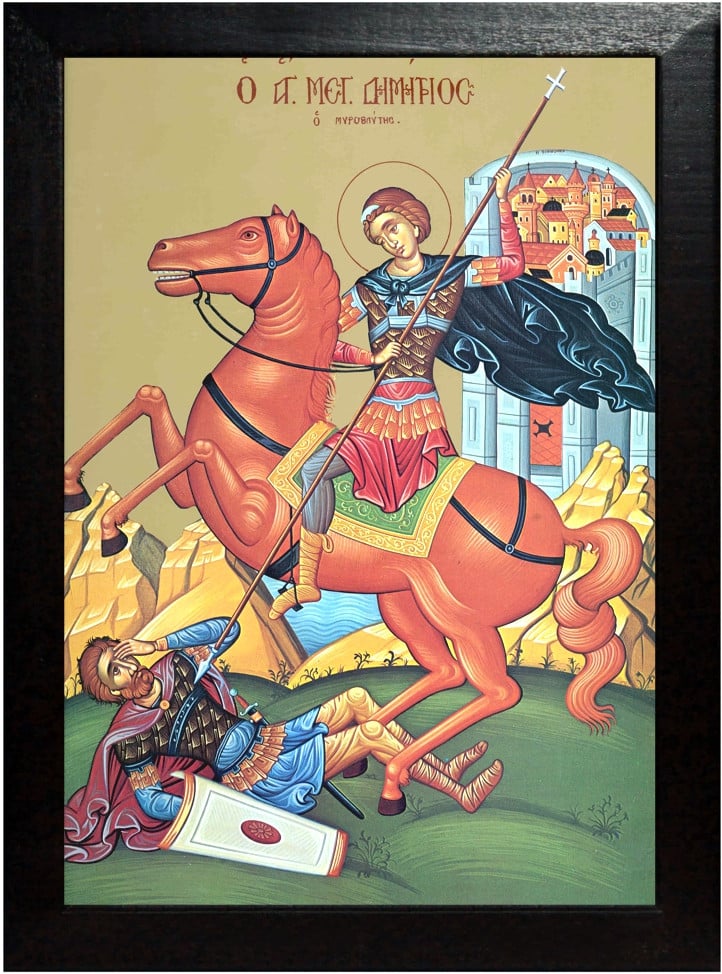 Sfantul şi marele mucenic Dimitrie s-a născut în cetatea Solun (Tesalonic), din părinţi de neam bun şi dreptcredincioşi. Tatăl lui era voievod în cetatea Solunului, crezînd în taină în Domnul nostru Iisus Hristos şi slujind Lui. Dar nu îndrăznea să mărturisească preasfînt numele Lui, căci atunci era mare prigoană asupra creştinilor din partea păgînilor împăraţi.