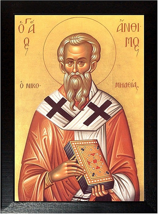 Deci, primind rînduirea Bisericii Nicomidiei, ca un bun cîrmaci în mijlocul valurilor mari a păzit întreaga corabie de înecare. Căci deşi mulţi creştini erau înecaţi în mare pentru Hristos, nu s-au afundat în apele păgînătăţii, nu i-a înecat pe ei viforul închinării de idoli, nici nu i-a înghiţit adîncul iadului cel mai dedesubt, ci s-au aflat în limanul ceresc cel lin şi neînviforat prin povăţuirea şi cîrmuirea lui Antim, păstorul lor.