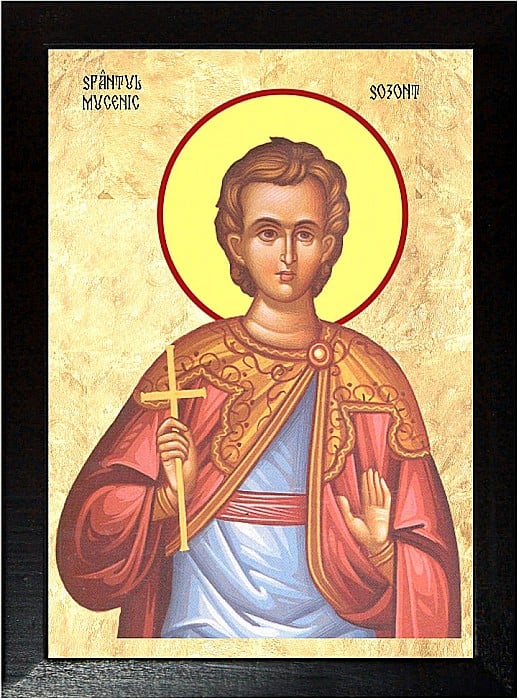 Maximian, ighemonul Ciliciei, cînd a intrat în cetatea Pompeiopol, făcîndu-se praznic idolului de aur, a adus multe jertfe. Era acolo un tînăr cu neam din Licaonia, anume Sozont, creştin cu credinţă, cu deprinderi bune, plin de lucruri bune, pentru că învăţa ziua şi noaptea legea Domnului. Acesta, păscînd oile cele ne-cuvîntătoare, pe cele cuvîntătoare le povăţuia la păşunea cea bună; pentru că unde era el cu oile, acolo se adunau la dînsul şi ceilalţi păstori, copii şi bărbaţi, şi îi învăţa pe ei să cunoască pe unul Dumnezeu. Aşa, pe mulţi a adus la Sfîntul Botez, pentru că darul Domnului nostru Iisus Hristos era întru dînsul.