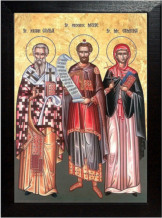 Aşa a călăuzit Moise poporul israelit prin pustietăţi felurite patruzeci de ani, mijlocindu-le lor toate bunătăţile de la Dumnezeu. Cînd au cîrtit pentru bucate, aducîndu-şi aminte de bunătăţile din Egipt, el a rugat pe Dumnezeu şi le-a plouat mană să mănînce şi le-a trimis cristei pînă s-au săturat. Cînd au cîrtit pentru băutură, el le-a scos apă din piatră: a lovit piatra şi a curs apă. Cînd a tăbărît asupra lor Amalic, el a cerut de la Dumnezeu biruinţă supra lui Amalic. Căci îşi ridica mîinile la rugăciune şi biruia Israel pe Amalic, pe care, pînă în sfîrşit l-a tăiat cu sabia. Şi de cîte ori au mîniat pe Dumnezeu în pustie, Moise L-a rugat pe Domnul pentru dînşii şi i-ar fi pierdut pe ei, de nu ar fi stat Moise, cel ales al Lui, cu inimă zdrobită înaintea Lui, ca să întoarcă mînia Domnului să nu-i piardă pe ei. Le-a dat lor şi lege scrisă pe lespezi de piatră, pe care le-a luat Moise, în munte, de la Dumnezeu, după ce postise patruzeci de zile şi patruzeci de nopţi. Şi a grăit Domnul către dînsul faţă către faţă, ca şi cum ar grăi cineva către prietenul său. Şi a făcut cortul mărturiei din acoperăminte frumoase, de culori roşii mohorîte şi de vison şi chivotul legii, ferecat cu aur, în care a pus năstrapa cea de aur care avea mana şi toiagul lui Aaron ce a înfrunzit şi Tablele Legii. Iar deasupra chivotului a pus doi he-ruvimi de aur şi a aşezat toate cele spre jertfă şi spre arderea cea de tot. Le-a pus lor preoţi şi diaconi, învăţîndu-i pe ei rînduiala jertfei. Le-a aşezat lor praznice şi luni noi, învăţîndu-i pe dînşii judecăţile şi îndreptările.