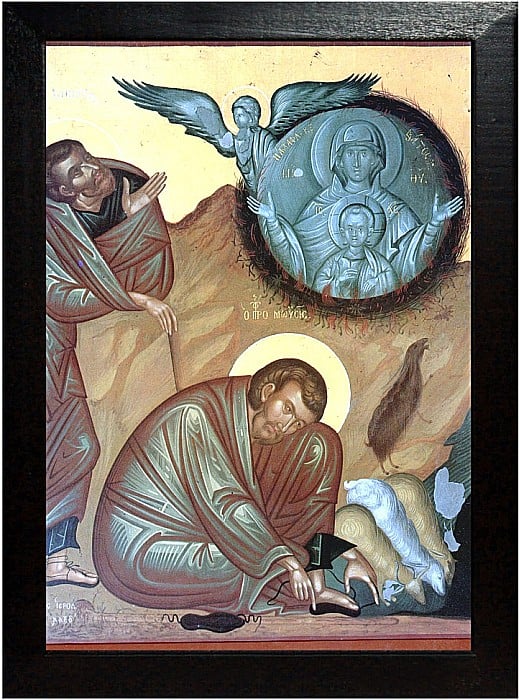 Iar Moise păştea oile lui Iotor, socrul său, şi mîna oile la pă-şune şi a mers în muntele Horeb. Aici i s-a arătat lui îngerul Domnului în văpaia focului din rug. Şi vedea Moise că rugul ardea cu foc şi nu se mistuia şi a zis: "Trecînd alăturea voi vedea această mare vedenie". Şi l-a strigat Domnul din rug: "Moise, Moise!" Iar el a zis: "Ce este, Doamne?" Şi i-a zis Domnul: "Să nu te apropii aici. Scoate-ţi încălţămintele din picioarele tale, că locul pe care stai tu este pămînt sfînt". Şi i-a zis lui: "Eu sînt Dumnezeul tatălui tău, Dumnezeul lui Avraam, Dumnezeul lui Isaac, şi Dumnezeul lui Iacob. Am văzut chinuirea poporului Meu din Egipt şi strigarea lor am auzit. Că ştiu durerea lor şi M-am pogorît să-i scot pe ei din mîna Egiptului, să-i iau din pămîntul acela şi să-i duc pe ei în pămîntul cel bun, în pămîntul în care curge lapte şi miere. Iar tu vino ca să te trimit la faraon, împăratul Egiptului, şi vei scoate pe poporul Meu, pe fiii lui Israel din pămîntul Egiptului".